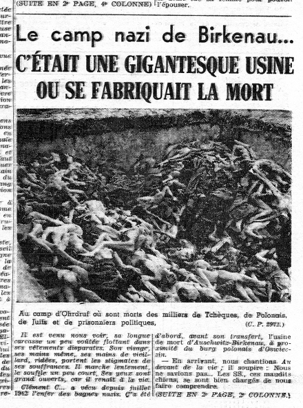 Le 24 avril, le journal L’Humanité publie une transcription du témoignage que Clément Coudert est venu livrer – presque immédiatement après son rapatriement – sur Birkenau et le fonctionnement des chambres à gaz. Mais le journaliste intervient certainement dans le récit qui lui est fait.
