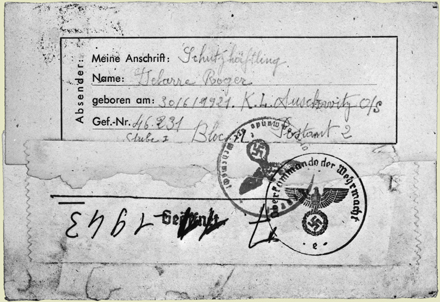 En juillet 1943, la plupart des détenus “politiques” français d’Auschwitz (essentiellement des “45000”) reçoivent l’autorisation d’écrire – en allemand et sous la censure – à leur famille et d’annoncer qu’ils peuvent recevoir des colis. La première lettre envoyée par Roger Debarre à ses parents leur arrive le 20 juillet. Lui-même reçoit le 10 août leur réponse postée le 23 juillet et un premier colis le 12 août. Un deuxième colis mettra cinq semaines à lui parvenir.