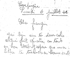 Son frère Alfred a reçu l’avis imprimé envoyé à certaines familles par l’administration militaire de Royallieu le 16 juillet 1942 pour les informer que leur proche n’est plus à Compiègne : « Par décision de nos services, le détenu susnommé a été transféré dans un camp pour y travailler. Sa destination étant inconnue, il vous faudra attendre pour avoir de ses nouvelles. »