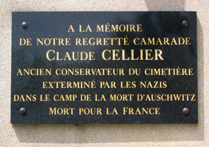 Une plaque est consacrée à sa mémoire à l’entrée du pavillon de garde du cimetière de Gentilly : « À la mémoire de notre regretté camarade Claude Cellier, ancien conservateur du cimetière, exterminé par les nazis dans le camp de la mort d’Auschwitz, mort pour la France ».