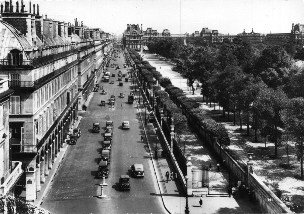 Perspective sur la rue de Rivoli dans les années 1930-1940. Carte postale non datée. Collection Mémoire Vive.